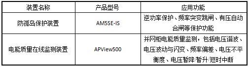針對(duì)上述情況,本解決方案利用防孤島保護(hù)裝置采集并網(wǎng)電壓、頻率及電網(wǎng)進(jìn)線電流等信號(hào),當(dāng)發(fā)生孤島現(xiàn)象時(shí),快速切除并網(wǎng)點(diǎn),使本站與電網(wǎng)側(cè)快速脫離。同時(shí)配置電能質(zhì)量在線監(jiān)測(cè)裝置,對(duì)電壓諧波、電壓波動(dòng)與閃變、頻率偏差、電壓不平衡度、電壓暫降/暫升/短時(shí)中斷等進(jìn)行實(shí)時(shí)監(jiān)測(cè)。通過這兩種設(shè)備在光伏并網(wǎng)柜中的使用,為電網(wǎng)的可靠運(yùn)行提供保障。本解決方案設(shè)備配置方案如表一。