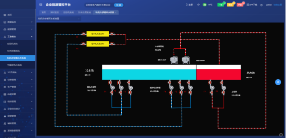 監(jiān)測(cè)軋機(jī)冷卻水循環(huán)系統(tǒng)的用能,設(shè)備的啟停狀況,出水回水的溫度等。