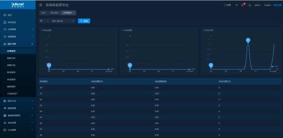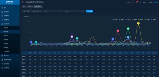 可查看指定時段充電站和充電樁的用電量,顯示對應的能耗趨勢圖并進行同環比分析。