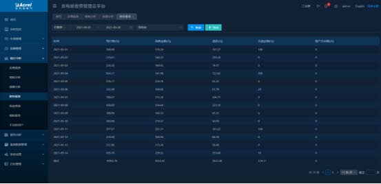 可按日、月、年查看各個充電樁的用電量,可導出成excel表格。