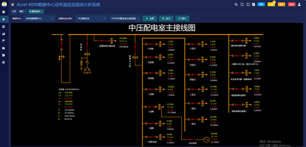 1)配電監測可以通過一次圖形式幫助用戶了解每一個機柜的運行情況,數據實時刷新。