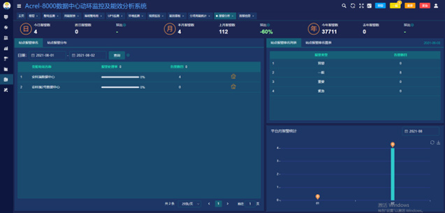 6.3.9告警分析:同時對數據中心所有報警進行統計,提供同環比的數據比對,幫助用戶改進數據中心,保障其正常運行。