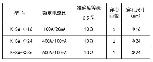 (2)AKH-0.66/K-SW系列電流互感器,在該模塊有4根引線,兩根傳輸電流信號,兩根傳輸開關量信號;