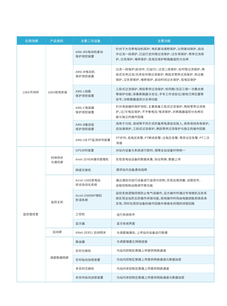 公司具備110kV及以下電壓等級(jí)用戶變電站的全系列產(chǎn)品及整站綜合自動(dòng)化解決方案,方案主要涵蓋了監(jiān)控系統(tǒng)、通訊管理機(jī)、測(cè)控裝置、繼電保護(hù)裝置、測(cè)量表計(jì)、智能操控等產(chǎn)品。