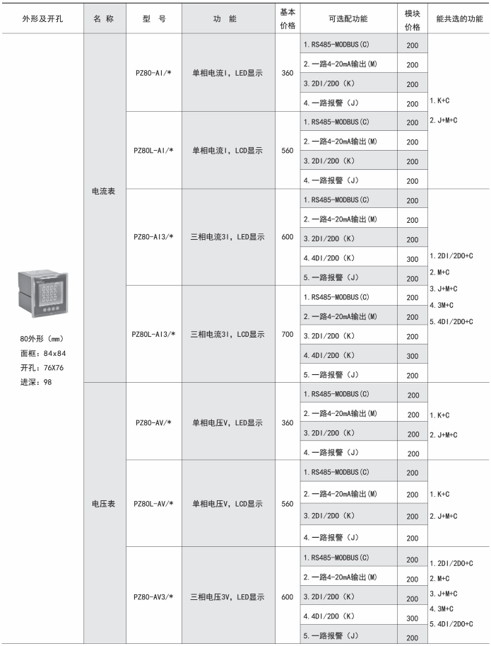 PZ系列交流檢測儀表產品簡介: